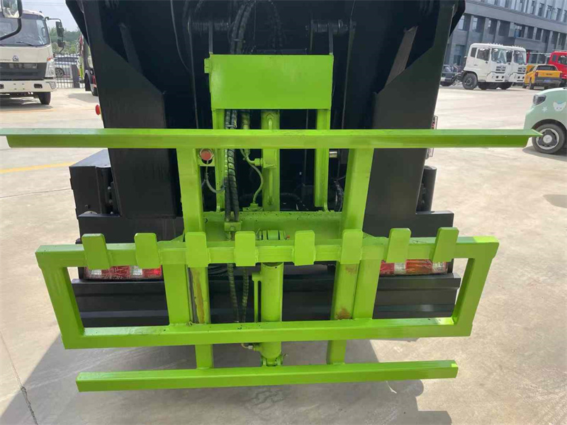 采用结构简单,性能可靠的后翻转上料机构,上料机构单次上料循环时间短,运行,在狭窄街道和小区作业更加方便。优化后的翻桶机构大大提高了翻桶机构的适应性。同时,提高了翻桶机构的可靠性。