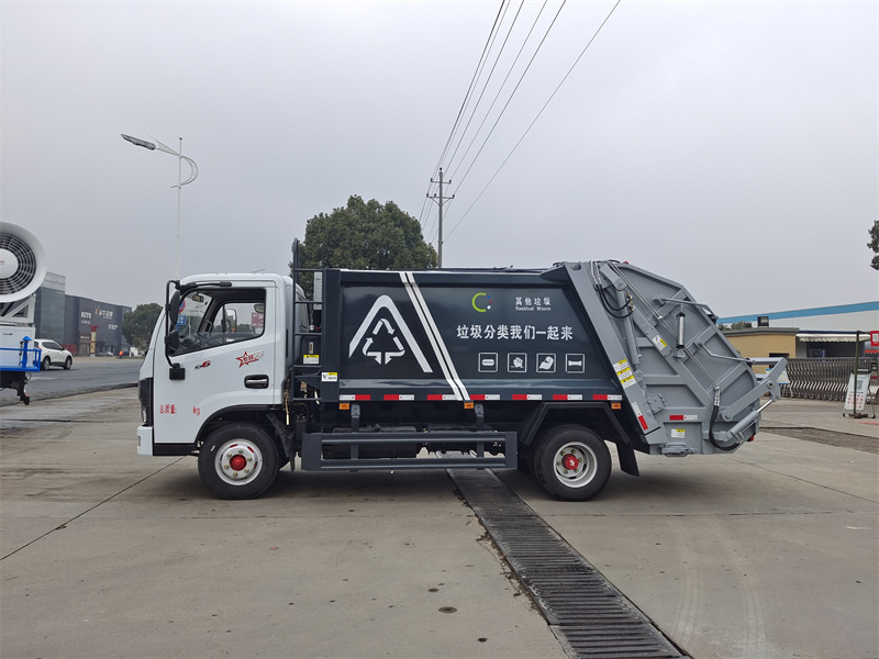 一、车辆容积6立方,箱体外观为圆弧流线性造型,四轴卷板机一次滚弧成型,由焊接机器人、光纤激光切割机、数控等离子切割机等先进生产设备制作而成,杜绝了泄漏风险,外置油缸结构和双向压缩技术,实现压缩比超过1:2.5,单次循环≤20秒,一方可压18桶生活垃圾。