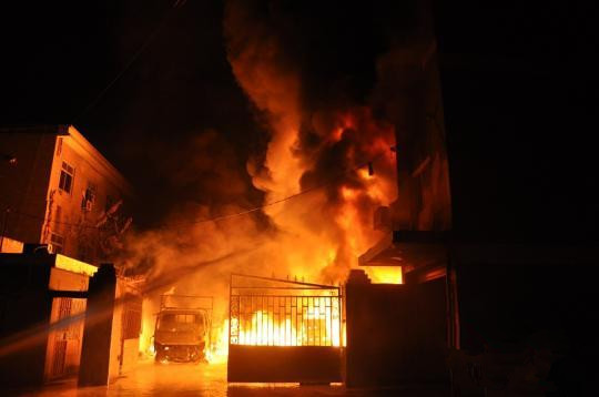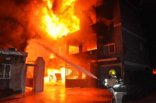 凌晨3时28分,杭州消防支队特勤二中队的消防官兵抵达现场。据报警人称,起火的厂房内有大量塑料和泡沫等易燃物。经过现场侦察发现,起火建筑是一幢3层砖混结构厂房,总面积约300多平方米,厂方北面连接电动车公司,西南面毗邻耗材公司,东面是居民宿舍,火舌正从一楼窗户向外喷出,整幢建筑浓烟滚滚。