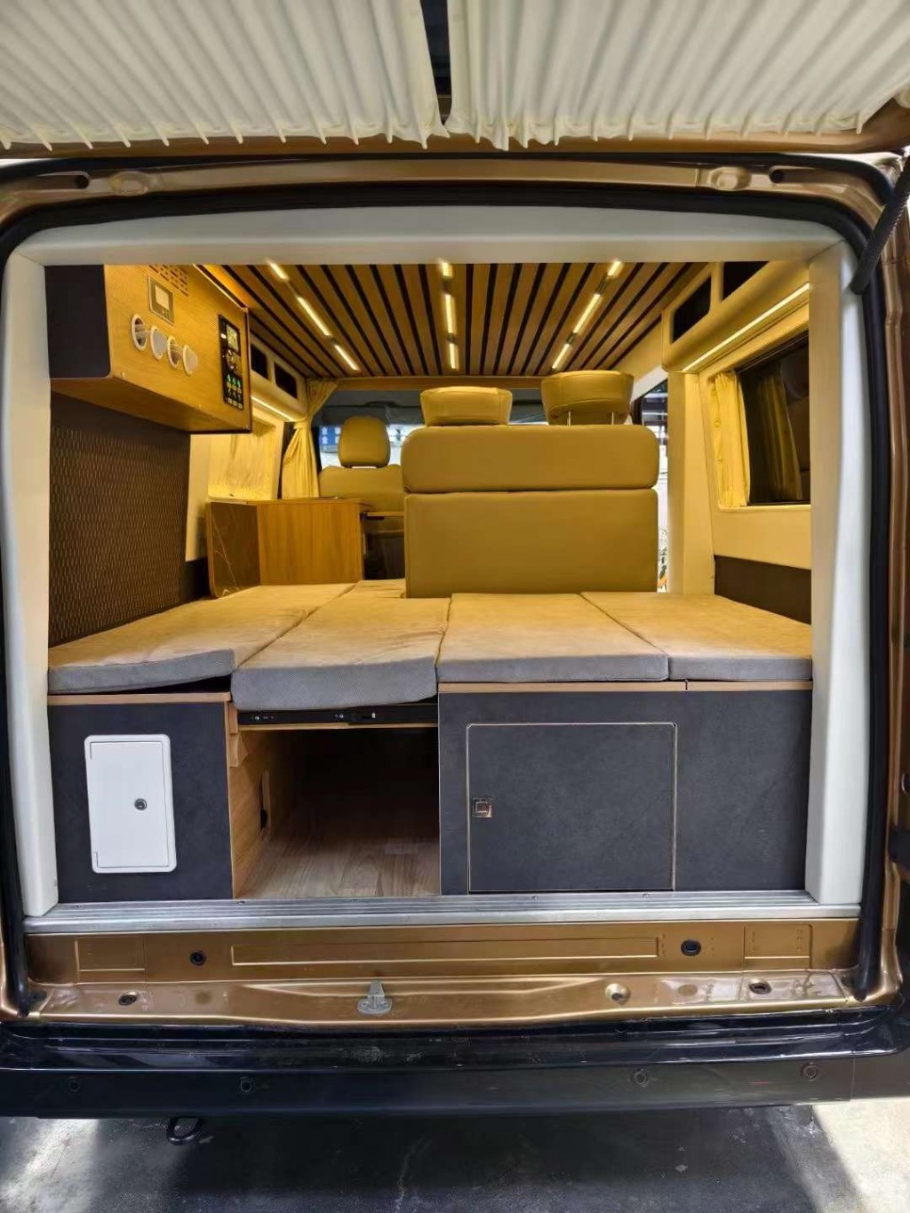江铃福特新全顺B型自改房车,国六手动柴油六挡六座,整车况超好,很省油,,加装350安时锂电,2000瓦纯正玄波逆变器,14.6伏行车升压充电机,流媒体前后行车影像记录仪,80升不锈钢室内水箱和60升活动塑料水箱,配1300W电磁炉和煤气灶双重做饭模式,水池水龙头茶吧机全套,2.7米*2.2米遮阳棚,驻车柴暖,更换了8级调节减震器,侧门和后门都安装了隐私隔热和防蚊两用纱窗,加装前后护杠和右侧脚踏板,做了全车保温和隔音,前置吧台,吸音板顶棚,前面是个大储物柜,两侧各三个小储物柜,后面装有投影机,车室内外后分别安装12伏LED照明灯带,后排奔驰座椅,放到和后床刚好连起来拼成1.4米*2米的大床,刚加装600瓦太阳能板,mppt高质量控制器,车上常备一续航100公里的折叠电动车,方便驻车时买菜闲逛,全车自己改装,精细度略差,实用性超爆。